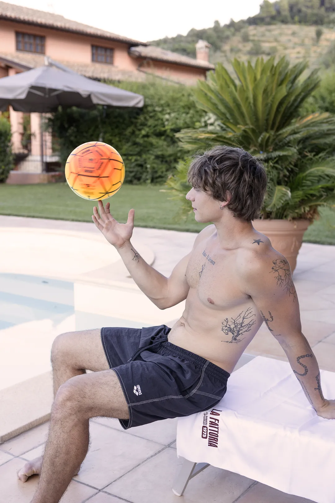 Alla piscina vi si accede con una scala romana provvista di idromassaggio: di notte, illuminata da led con colori cangianti, crea un’atmosfera serale molto elegante.